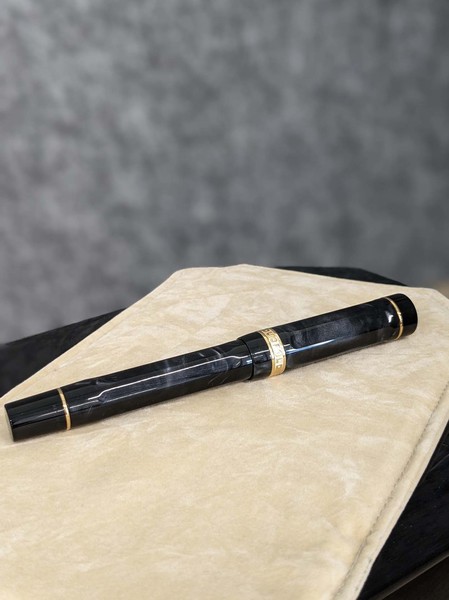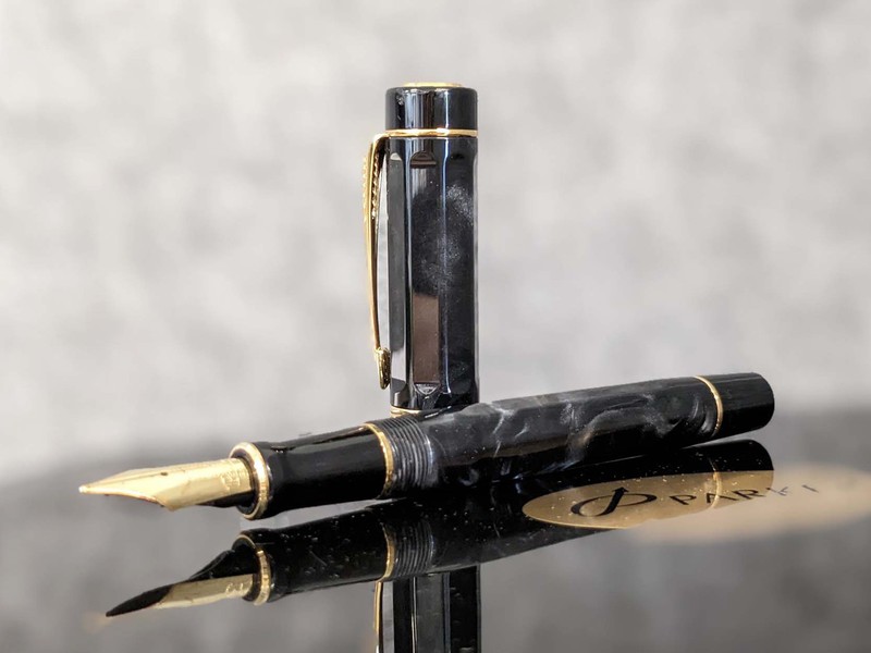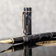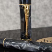 schattenhaften Reflexen, die jedem Schreibgerät der Serie Einzigartigkeit verleihen. Auf der Verschlusskappe befindet sich eine Plakete mit dem Duofold-Schriftzug und den Jahreszahlen "1888 -